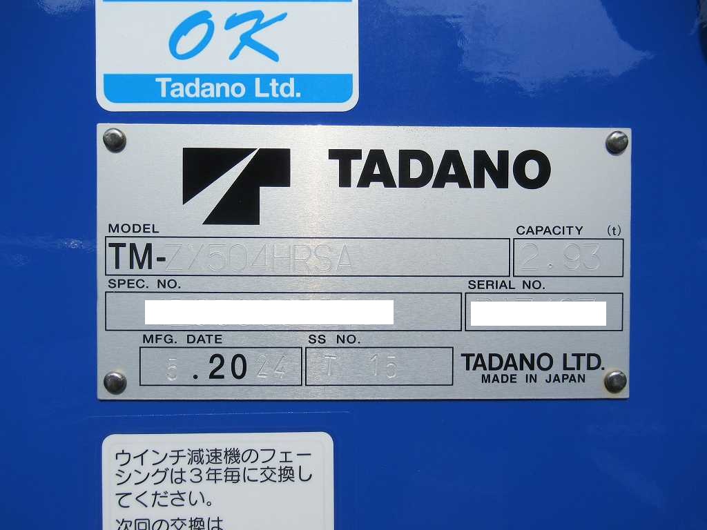 備考未使用車 増トン 10.7t ワイド幅キャブ タダノ 4段 270PS 6速